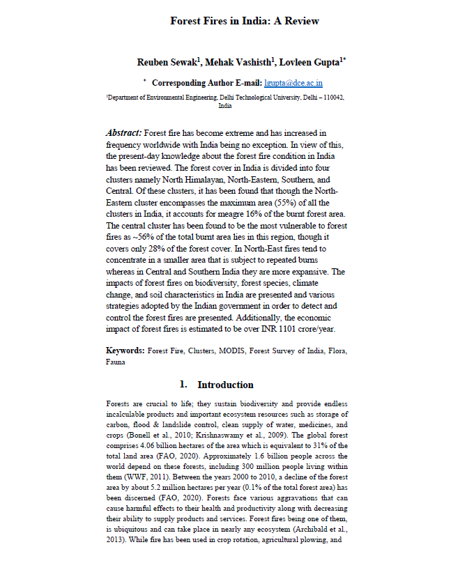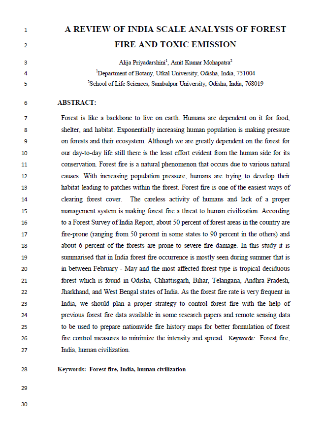 A Review of India Scale Analysis of Forest Fire and Toxic Emission