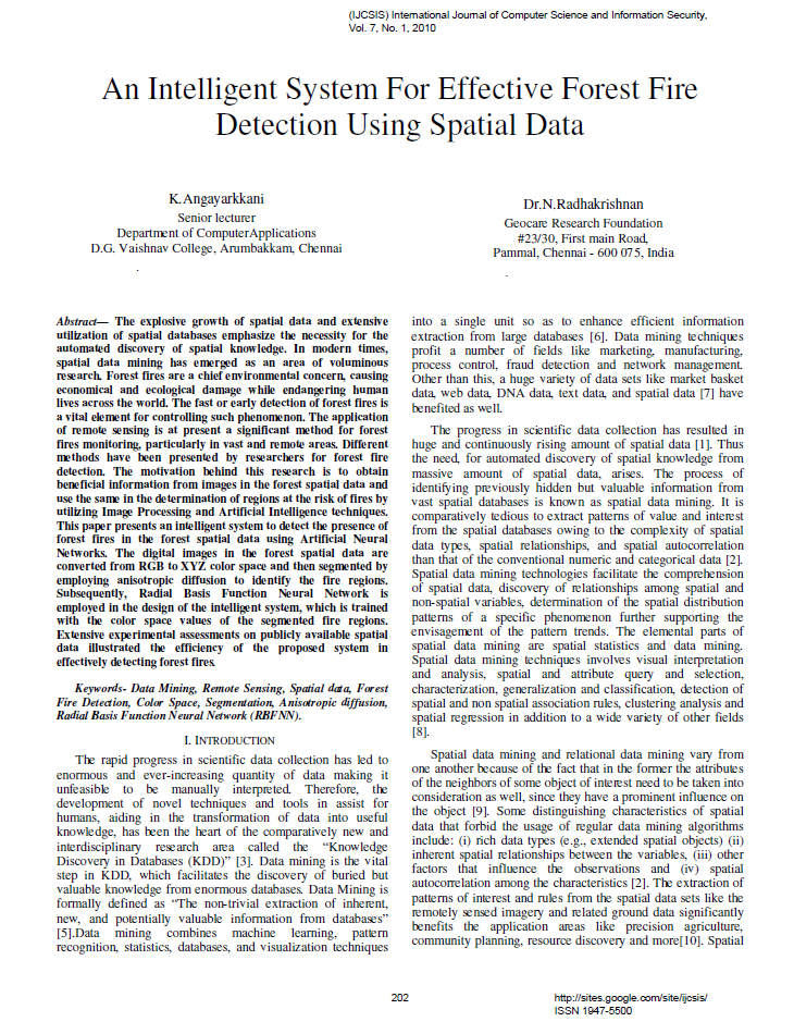 An Intelligent System For Effective Forest Fire Detection Using Spatial Data