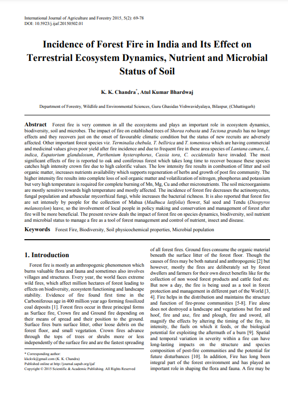 Incidence of Forest Fire in India and Its Effect on Terrestrial Ecosystem Dynamics, Nutrient and Microbial Status of Soil