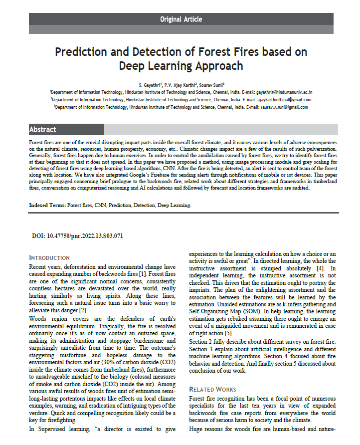 Prediction and Detection of Forest Fires based on Deep Learning Approach